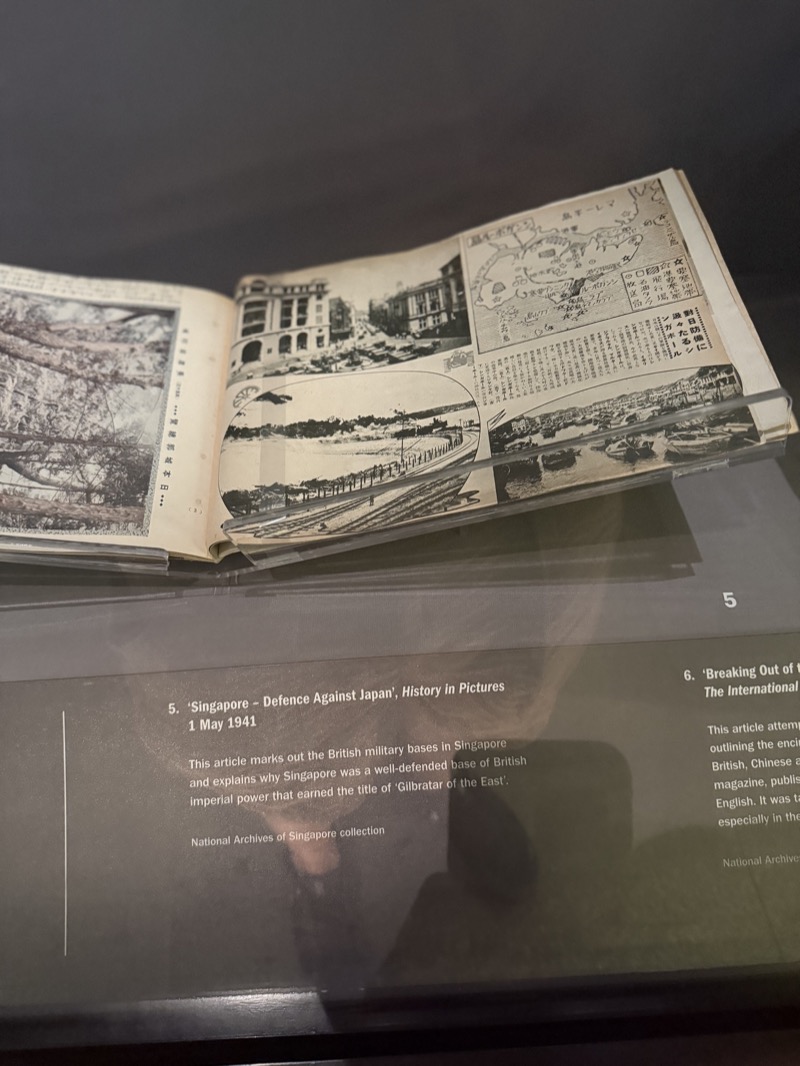 The museum displays a Japanese world map titled "Greater East Asian Warfare: A Current Map of the Change in the World Order," published in 1942 and deliberately backdated to February 15, the date of the British surrender. The backdating is itself a propaganda choice: it fixes the fall of Singapore as the hinge moment in a new global order. The map presents the Co-Prosperity Sphere as a fait accompli, a redrawn world in which Western colonial empires have been replaced by a Japanese-led Asian order. Singapore is renamed Syonan-to, which translates roughly as "Light of the South." The name was not ornamental. It was an administrative act: a renaming that signaled a change of sovereignty, language, and institutional control. The museum treats this renaming as a subject for analysis rather than outrage, which gives the exhibit a precision that more polemical treatments of the occupation tend to lack.